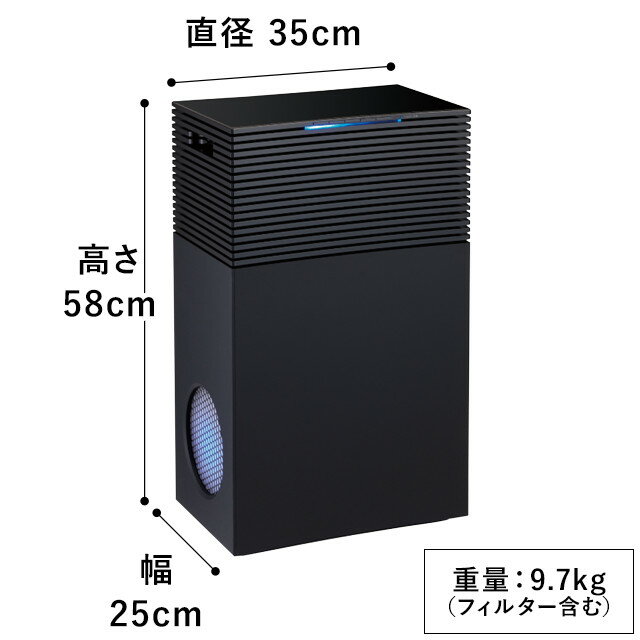 返品・交換について 本体寸法 幅350×奥行230×高さ580mm(突起部含む) 重量 9.7kg(フィルター含む) 電源 100V 50/60Hz(DC24V) 消費電流 最小:10W(弱)/最大:94W(急速) 運転音 最小:28dBA(弱)/最大:59dBA(急速) 保証 お買い上げ後1年間 備考 高い集じん・脱臭・分解性能を持続させるため、フィルター交換サインが点灯したらフィルターを交換してください。